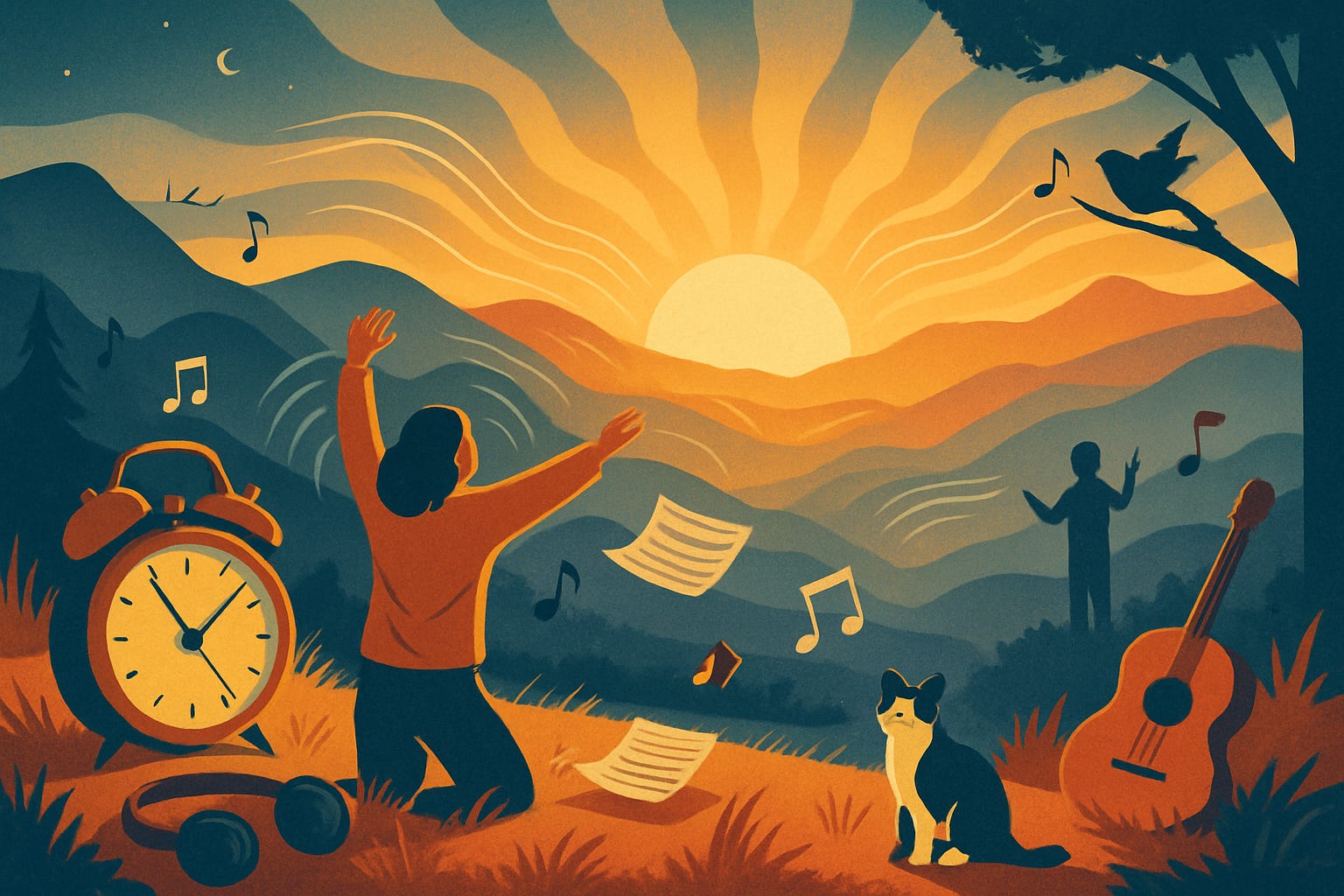 "Waking to music you chose activates different brain patterns than jarring beeps, potentially improving mood and reducing morning grogginess. For time management throughout the day, distinct alarm sounds help you instantly recognize which activity or transition the alarm signals."