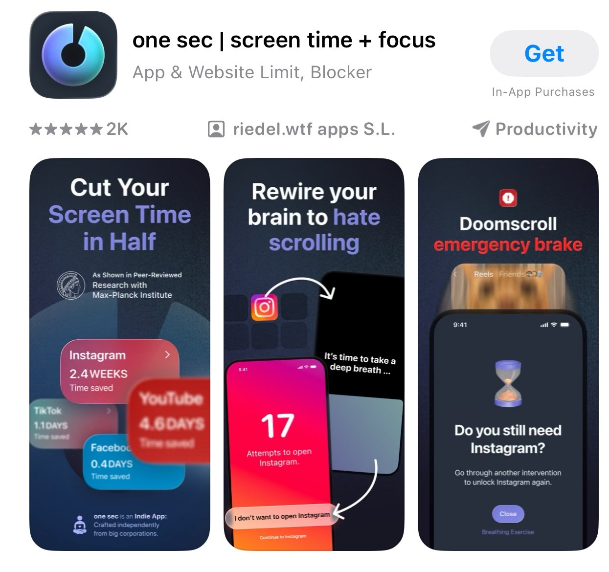 One Sec takes a unique approach to notification management by adding a breathing delay before opening apps. Rather than blocking notifications entirely, it makes you pause and consider whether you actually need to check the app right now.
